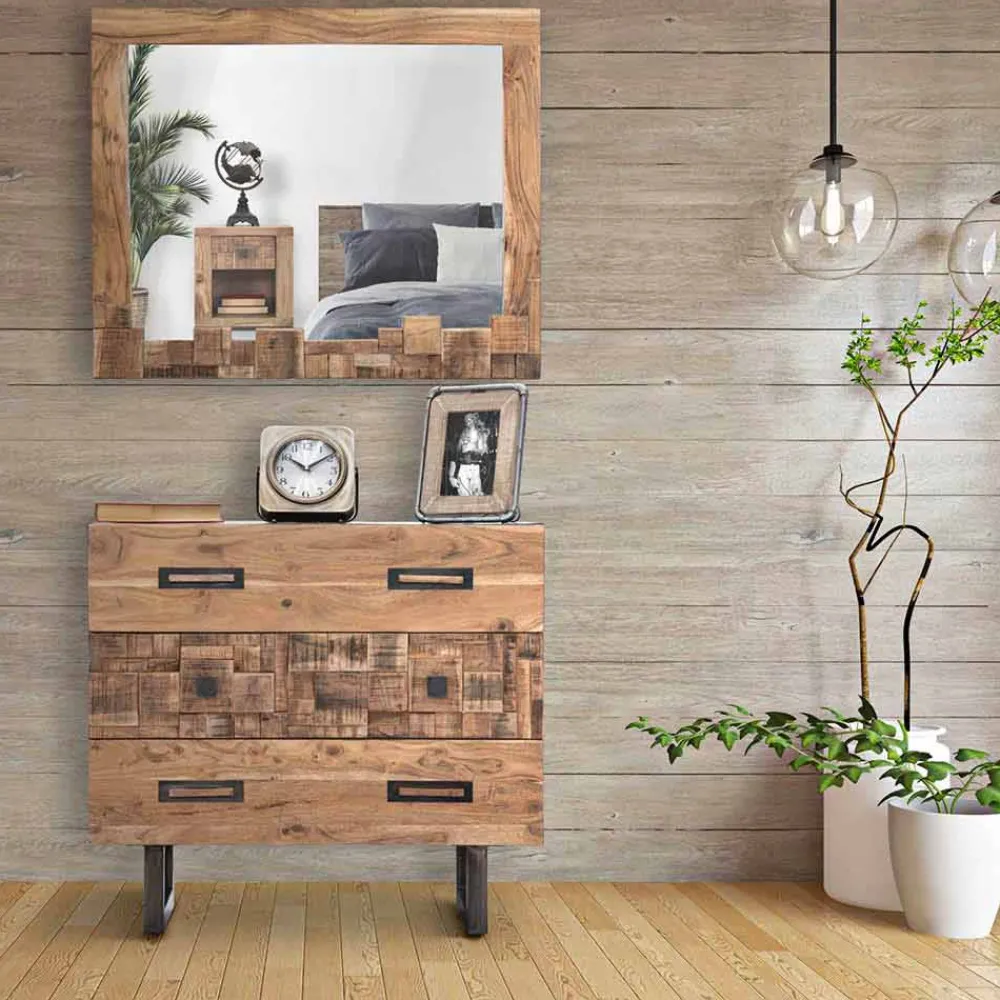 Wandspiegel aus Akazienholz und Spiegel in modernem Design.