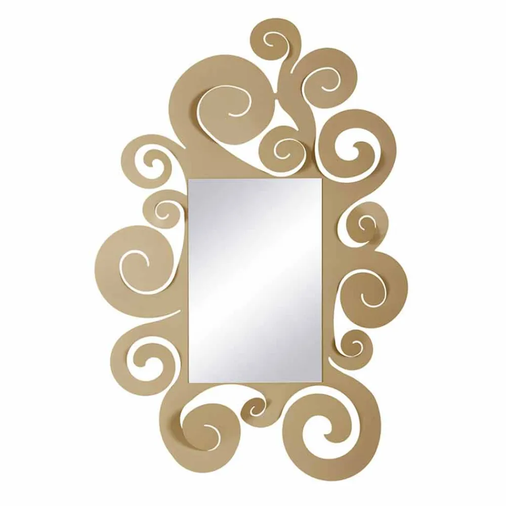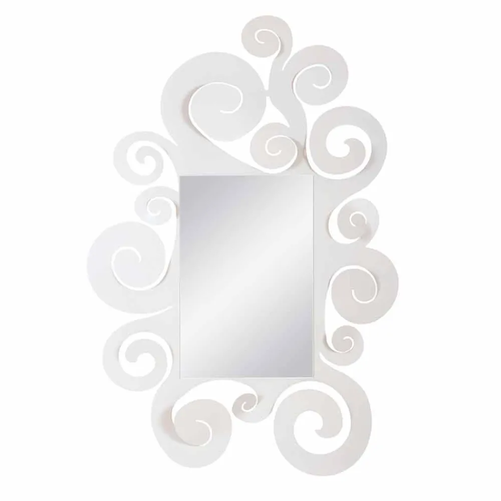 Großer Wandspiegel, handgefertigt in Italien aus Eisen in weiß, beige gold- oder silberfarbe.
