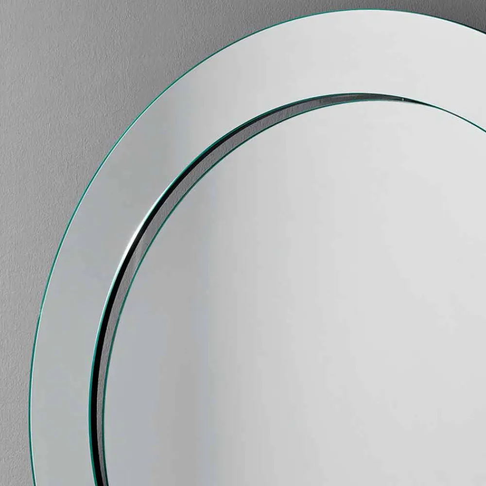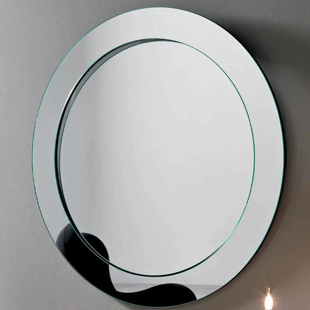 Runder Wandspiegel im modernen Stil mit geneigtem Rahmen, in Italien von Hand realisiert.