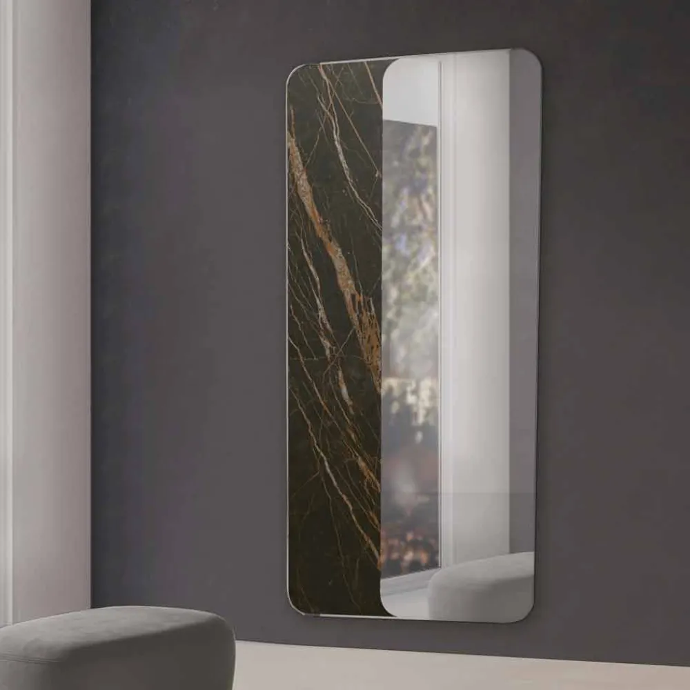 Wandspiegel mit Keramik- oder Holzeinsatz, edles Produkt made in Italy.