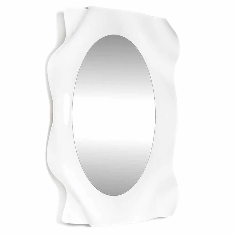 Jeder DIVA-Spiegel ist ein Kunstwerk: eine 100% reine Polymerfolie aus PMMA-Plexiglas mit einer eleganten milchigen, weißen Farbe wird von Hand bei hohen Temperaturen drapiert, um einen einzigartigen und unwiederholbaren Rahmen zu schaffen. Das Plexiglas ist stoßfest, unverformbar, unveränderbar und wärmeisolierend, Helligkeit und Helligkeit bleiben konstant und unverändert. Das PMMA Plexiglas aus reinem Polymer ist ungiftig, hypoallergen, geruchlos und antibakteriell. 100% recycelbar. Entworfen, entworfen und hergestellt in Italien, mit italienischen Materialien.