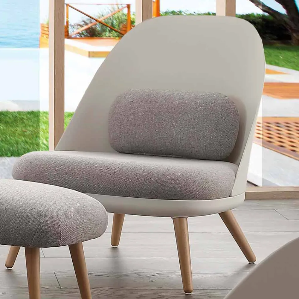 Er besteht aus einer Struktur aus Polypropylen und Stoff und Beinen aus massivem natural Buchenholz. Die Struktur ist in drei verschiedenen Farben erhältlich:
