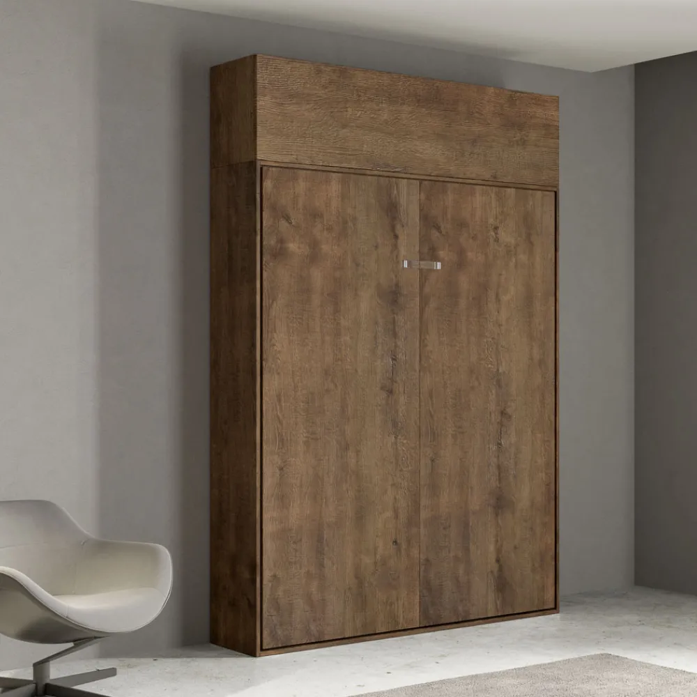 Der Bettrahmen besteht aus 18 mm dicken Melamin-Spanplatten und gewährleistet so Widerstandsfähigkeit und Langlebigkeit. Der Öffnungsmechanismus ist sanft und sicher und verwandelt die Wand mit einer einfachen Geste in ein bequemes Bett.