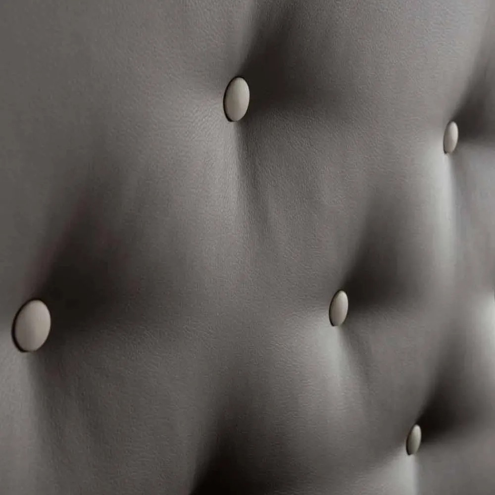 Das gepolsterte Kopfteil ist mit Knöpfen verziert und zeichnet sich durch den zweifarbigen Rahmeneffekt aus; es ist nicht abnehmbar. Der Bettrahmen ist abnehmbar.