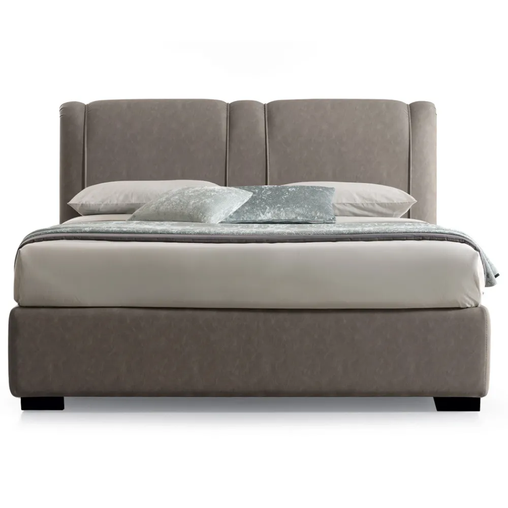 Designerbett mit Stauraum, bezogen mit feuerfestem Leder, hergestellt in Italien.