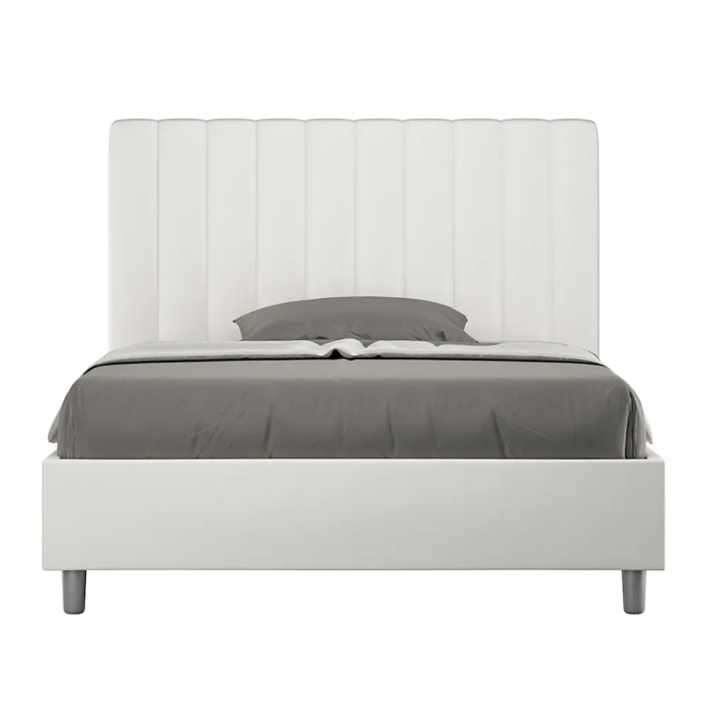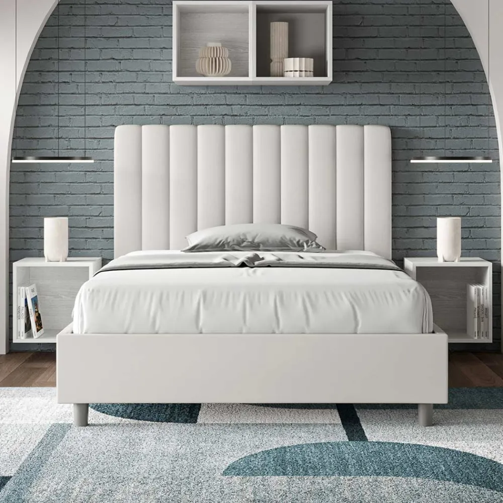 Französisches Bett 140×200 cm gepolstert aus Melaminpaneelen und mit Kunstleder bezogen, komplett Made in Italy.