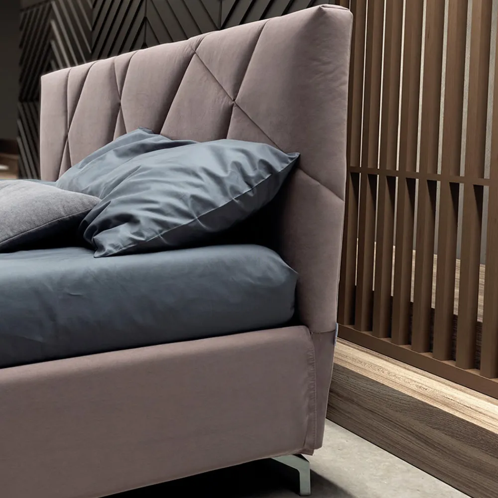 Doppelbett mit dynamischem Untergestell , Aufbewahrungsbox, Metallfüßen mit poliertem Stahlfinish (Höhe 8 cm) und Kopfteil aus wasserabweisendem und feuerfestem Stoff. Dieses Bett ist ein Sinnbild für Komfort und zeitgenössisches Design. Es ist eine perfekte Kombination aus Raffinesse und Funktionalität und wurde entwickelt, um Nächte purer Entspannung und unvergleichlichen Stils zu bieten.