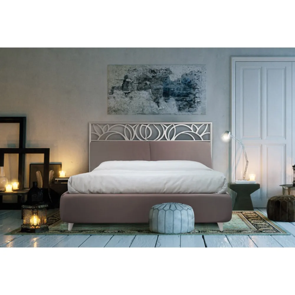 Modell ohne Ringcontainer: gepolsterter Bettrahmen mit unterstützter Basis inklusive und bequemem 11 cm hohen Fuß, der die Reinigung unter der Struktur ermöglicht.