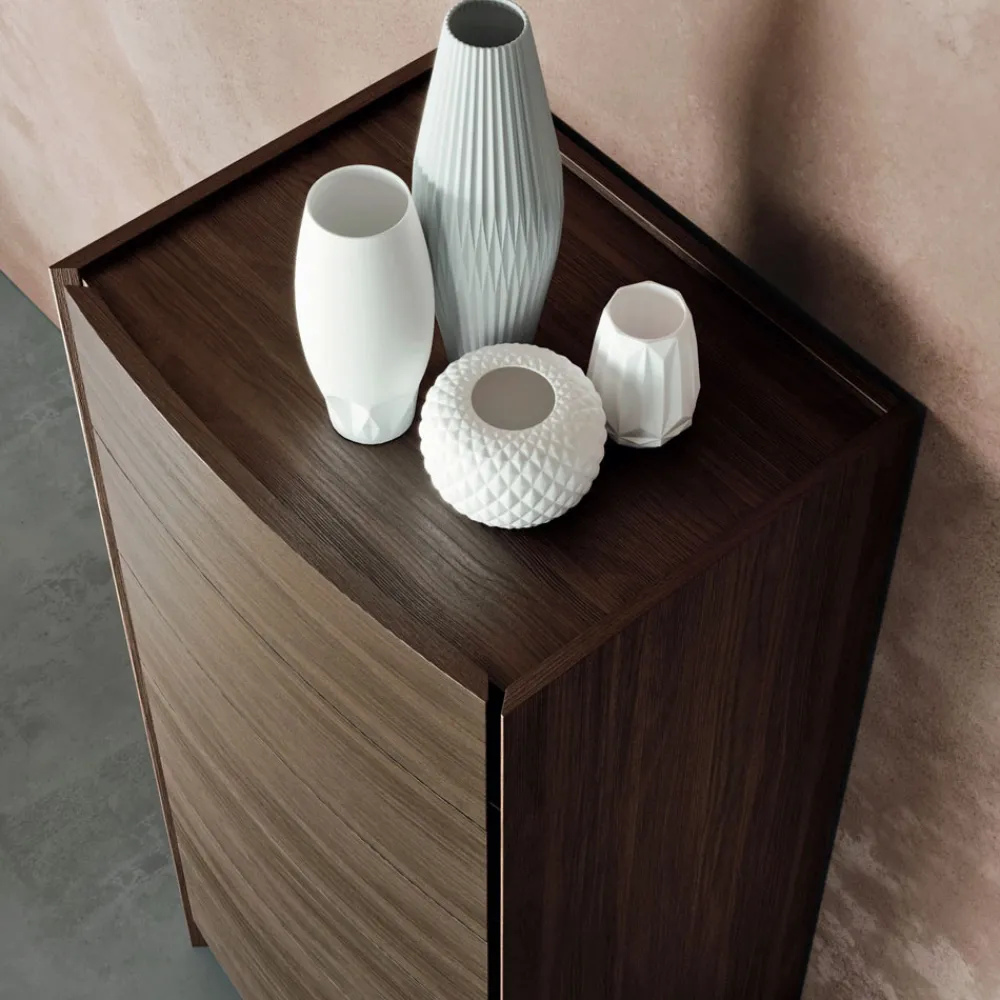Es ist eine Einrichtungsidee, die auf der Grundlage handwerklicher Werte geschaffen wurde, um die für das Made in Italy typische Exzellenz und hohe Qualität zu erreichen, bei der innovative Ideen und Kultur zugunsten der Optimierung der Prozesse und der Liebe zum Detail miteinander verwoben werden. So entstehen funktionale und raffinierte Möbel für den Schlafbereich.