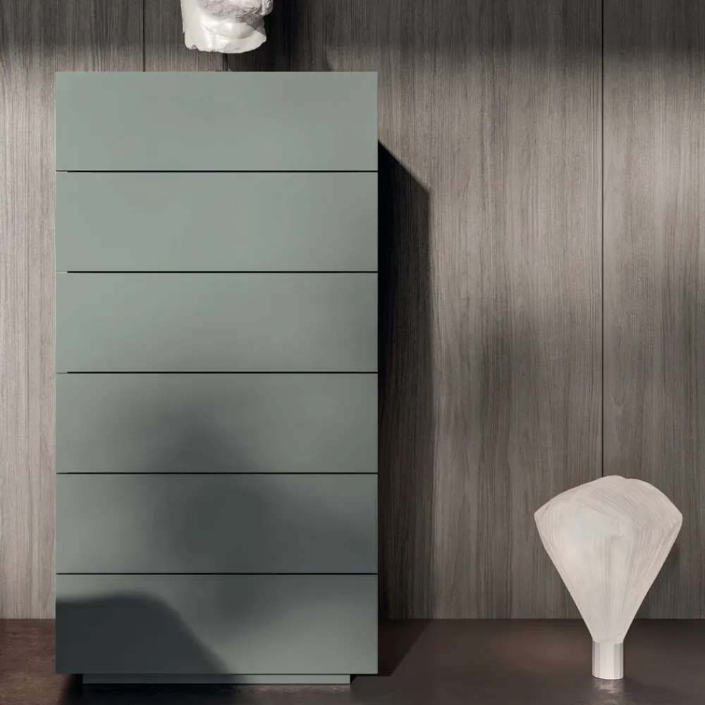 Es ist eine Einrichtungsidee, die auf der Grundlage handwerklicher Werte geschaffen wurde, um die für das Made in Italy typische Exzellenz und hohe Qualität zu erreichen, bei der innovative Ideen und Kultur zugunsten der Optimierung der Prozesse und der Liebe zum Detail miteinander verwoben werden. So entstehen funktionale und raffinierte Möbel für den Schlafbereich.
