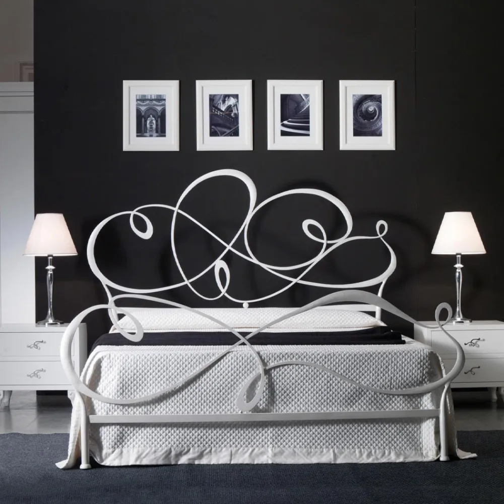 Doppelbett mit Kopfteil aus Eisen und 2 Nachttischen Made in Italy