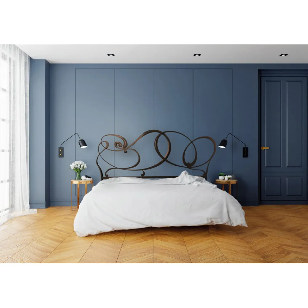 Doppelbett mit Kopfteil und optionalem Bettrahmen aus 90 % massivem Eisen und 10 % Rohr in pulverbeschichteter Ausführung. Maximale Liebe zum Detail, ein in jeder Phase kontrollierter Produktionsprozess und kontinuierliches Studium von Lösungen für eine bessere Erholung sind die Elemente, die die Entstehung dieses Produkts kennzeichnen. Das Bett ist das grundlegende Element, um den Schlafzimmern einen Hauch von Klasse und Eleganz zu verleihen: Die weichen, geschwungenen Designs und die sorgfältige Verarbeitung machen es zu einem Spitzenprodukt im Luxus-Nachtbereich.