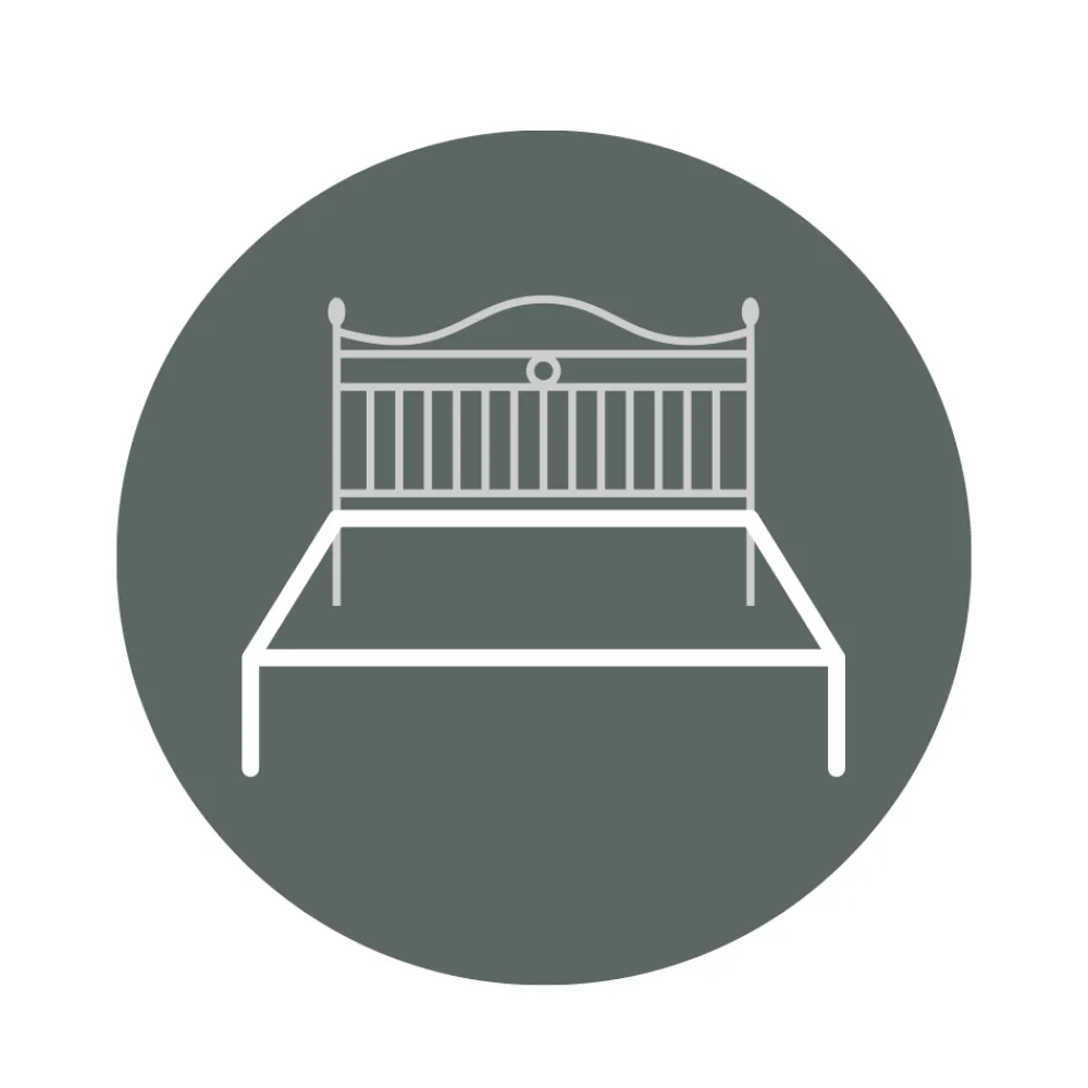 - Kopfteil mit Eisenbettrahmen ohne Lattenrost: 190 x 202 x Höhe 128 cm – Lattenrost 160×190 cm