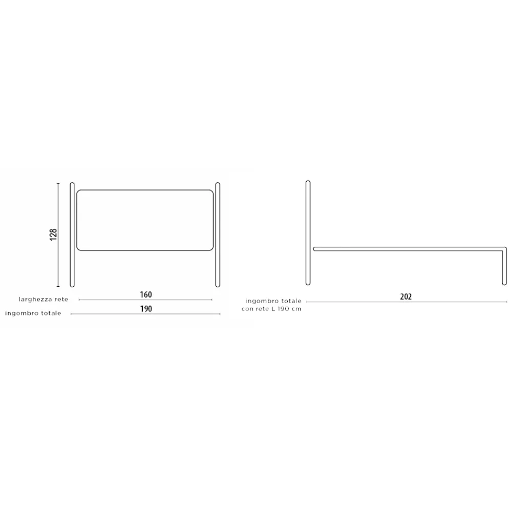- Kopfteil mit Eisenbettrahmen und Magnum-Bettbasis: 190 x 202 x Höhe 128 cm – Basis 160×190 cm