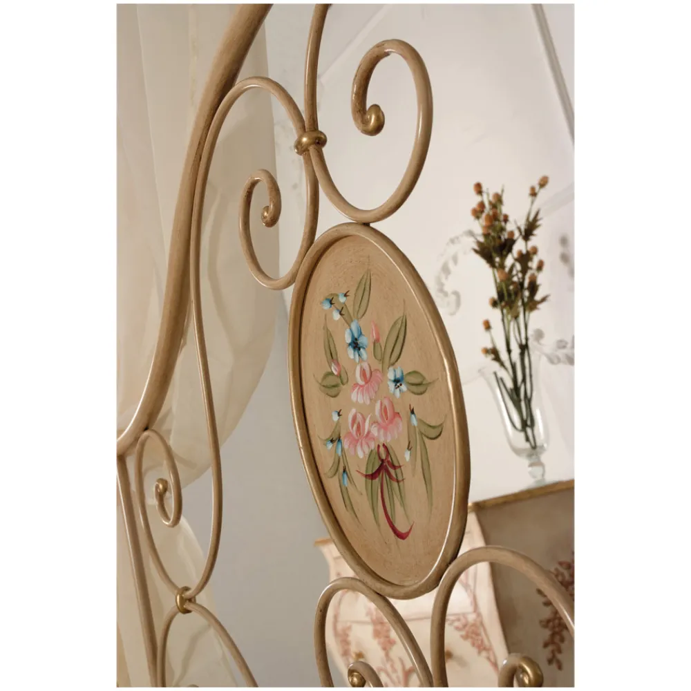 Dieses Bett ist eine charaktervolle Wahl mit ausgesprochen klassischem Flair, die unvergleichliche Weichheit und Raffinesse bietet. Das florale Detail am Kopfteil wird mit großer Sorgfalt und Aufmerksamkeit handgefertigt, um dem Produkt eine einzigartige und unwiederholbare Note zu verleihen.