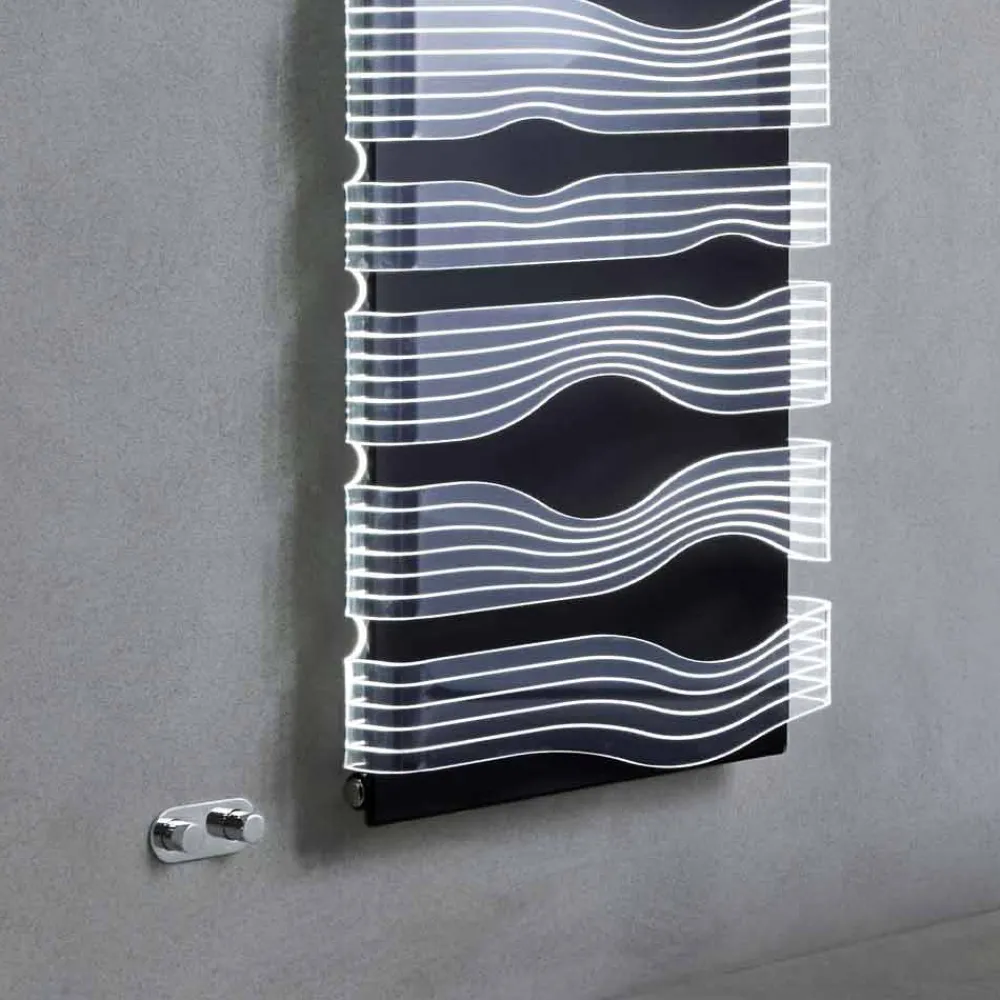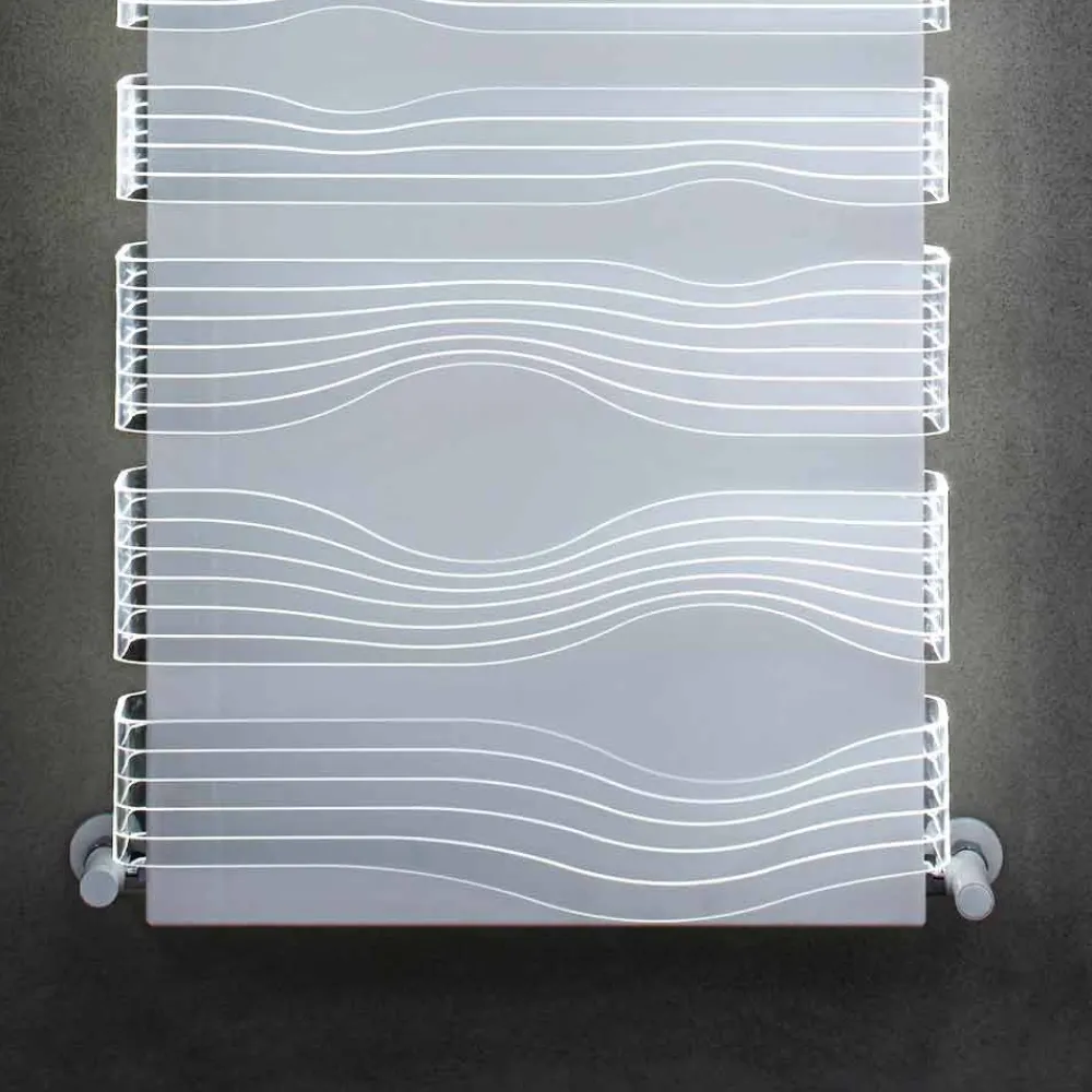 Die Besonderheit dieses Heizkörpers besteht in der Hintergrundbeleuchtung mit weißem LED-Licht mit einstellbarer Intensität und sehr geringem Energieverbrauch, das mit einer 220- bis 12-Volt-Stromversorgung versorgt wird.