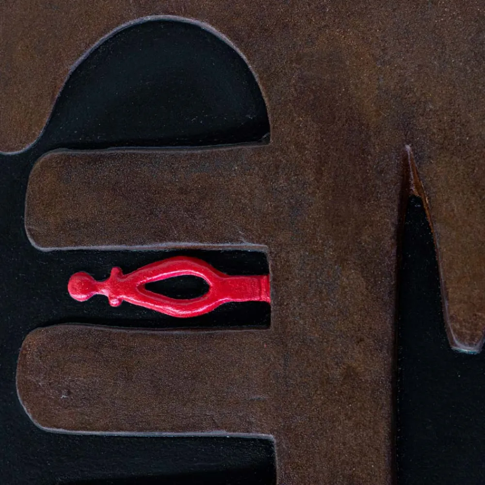 Hydraulischer Heizkörper mit einer Platte aus recyceltem Marmorpulver, ohne dass er gekocht werden muss, modelliert, geschliffen und nur mit Wasserfarben von Hand bemalt und mit einer Form des „Bugeisens“ der Gondel in Corten-Finish.