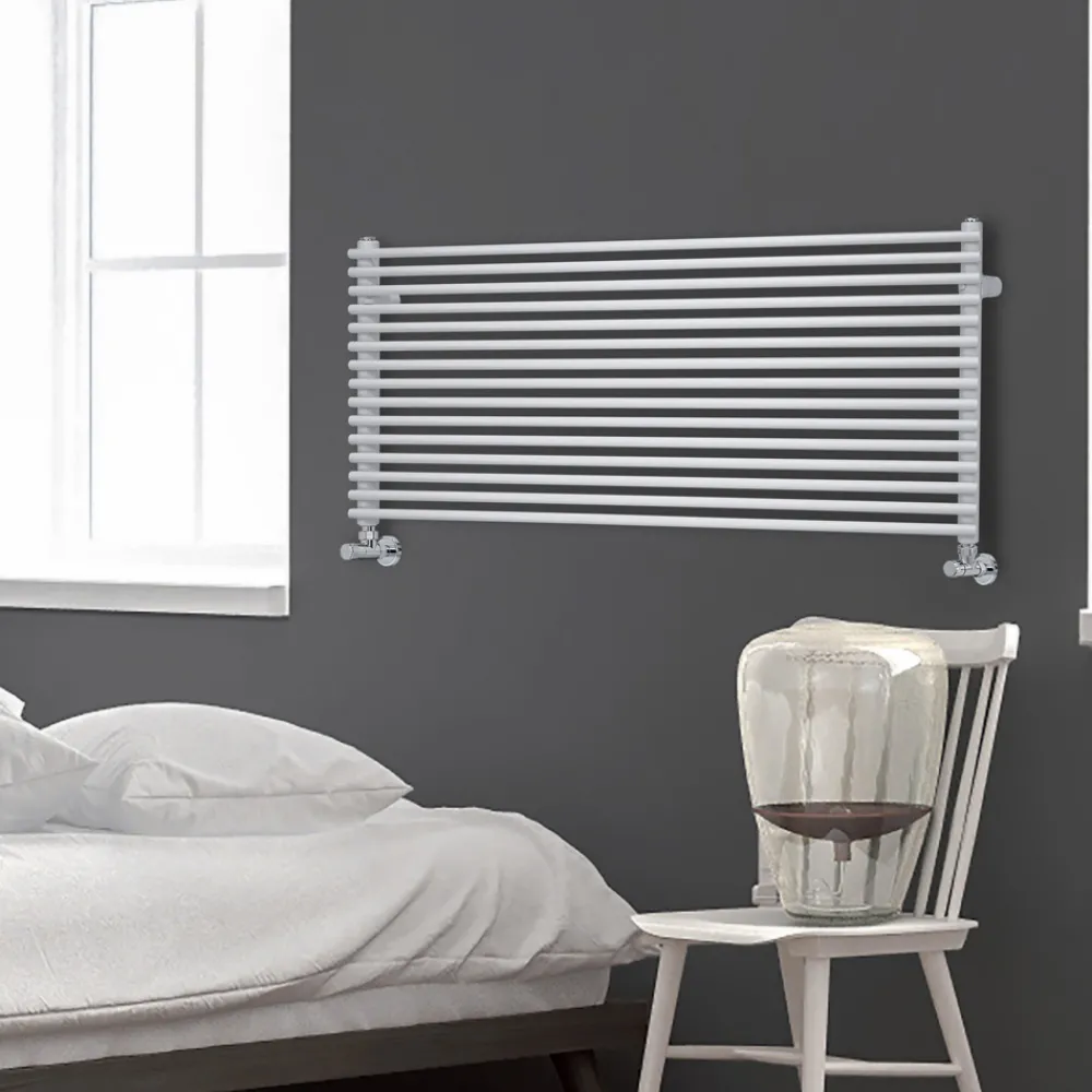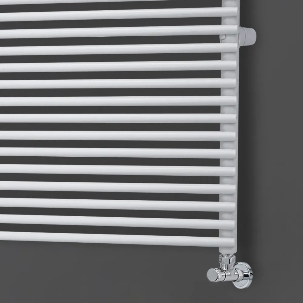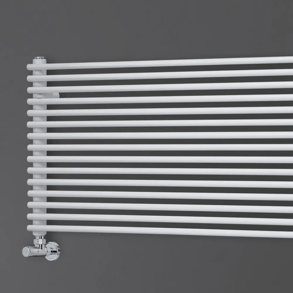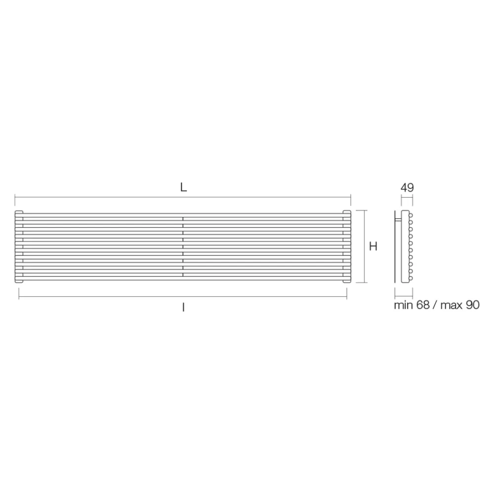 Hydraulischer Heizkörper aus Kohlenstoffstahl mit BITS-Finish, bestehend aus einer Reihe horizontaler Elemente mit einem Durchmesser von 1,6 cm, die an vertikale Verteiler mit einem Durchmesser von 3,5 cm geschweißt sind, vollständig in Italien hergestellt, inklusive Wandbefestigungssatz, Entlüftungsventil und Blindstopfen .