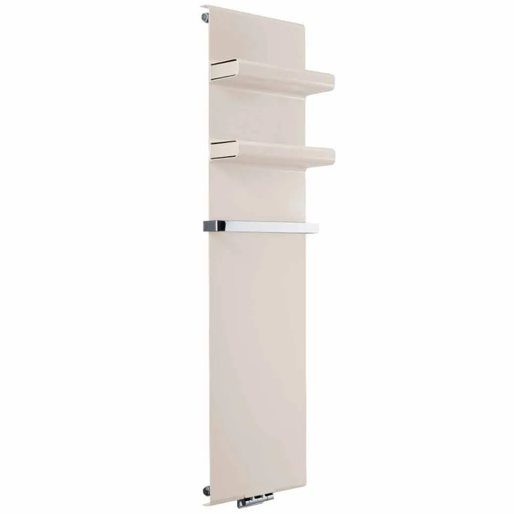 Diese hydraulische Strahlungsplatte verfügt über ein modernes und minimalistisches Design mit praktischen und eleganten integrierten Regalen mit Abdeckung und verchromtem Handtuchhalter, der die Kühlerbreite um 4 cm verlängert.
