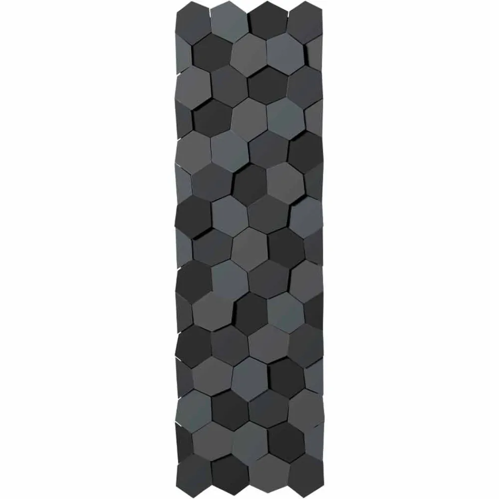 Diese hydraulische Strahlungsplatte hat ein modernes Design, das sich durch modulare und überlappende sechseckige Platten auszeichnet, die eine natürliche und suggestive Atmosphäre schaffen.
