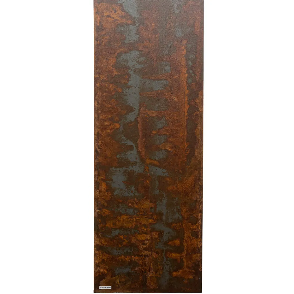 Nach einer zweiten Vernebelungsphase, um die Reaktion erneut zu aktivieren, folgt abschließend eine Behandlung auf Basis einer Spezialfarbe zum Schutz des Heizkörpers. Das Endergebnis, das aus den Verarbeitungsphasen hervorgeht, ist daher eine Oberfläche mit der typischen nicht homogenen Farbe von Corten, die das Helle und Dunkle von Rost zu einem originellen und harmonischen Farbspiel kombiniert.