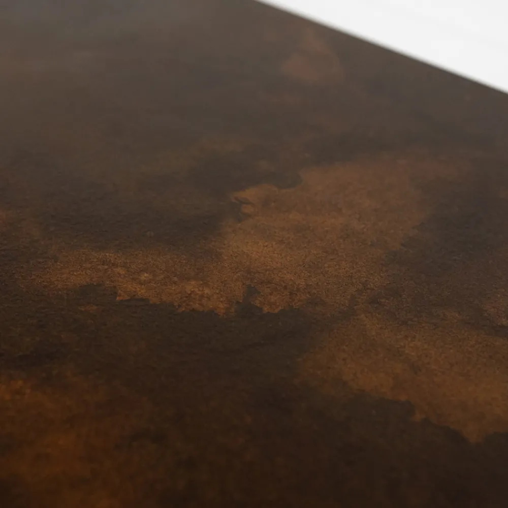 Die Erzeugung des Corten-Effekts beginnt mit dem Auftragen einer pigmentierten Farbe, die reich an Eisenzuschlagstoffen ist. Durch die Zerstäubung einer Kontrastsubstanz wird die Umwandlung der Oberfläche eingeleitet, wodurch die Reaktion der Pigmente aktiviert wird.