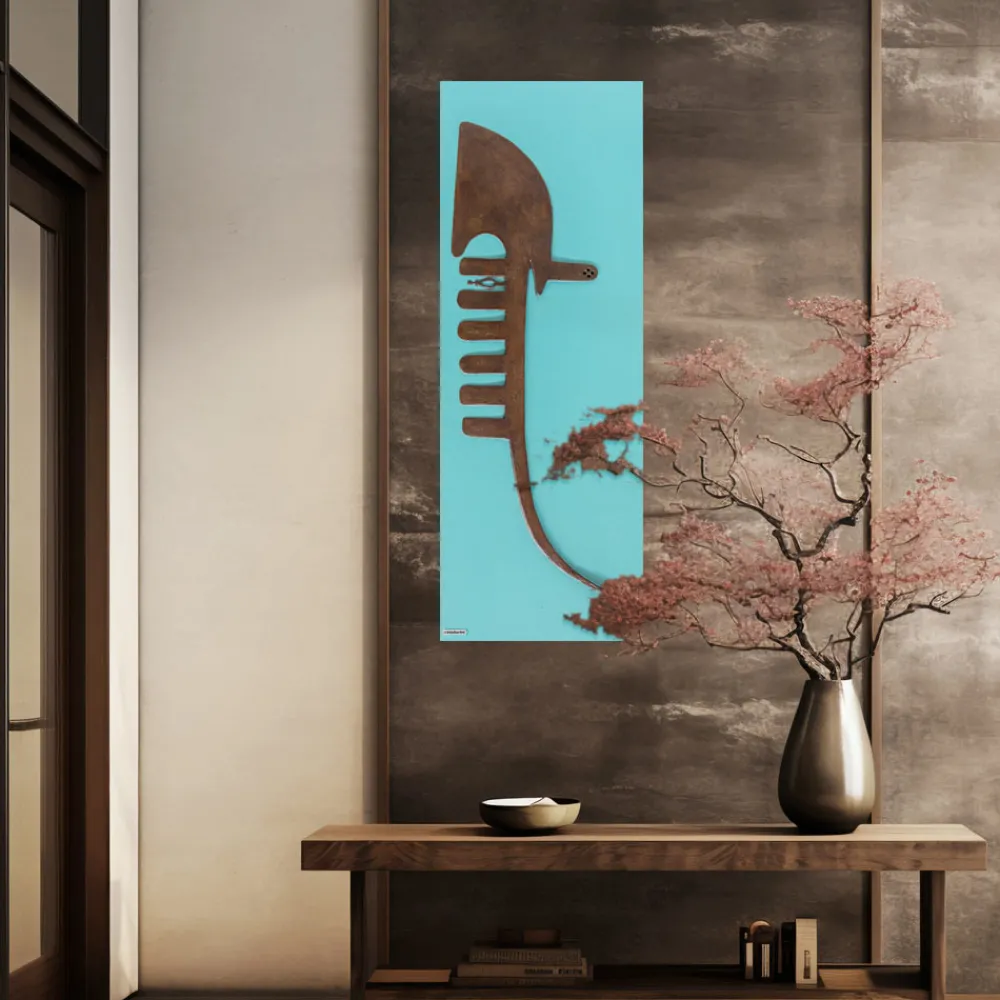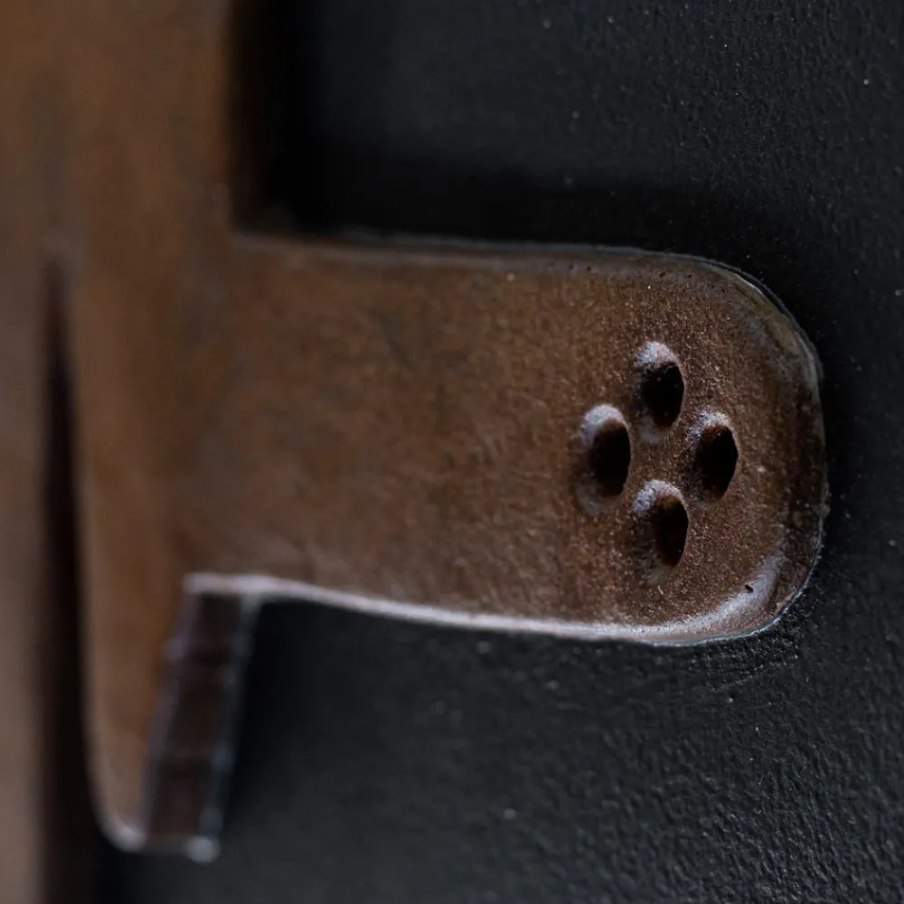 Hybridheizkörper mit einer Platte aus recyceltem Marmorpulver , die ohne Kochen hergestellt wird, von Hand modelliert, geschliffen und nur mit Wasserfarben und mit einer Form des „Bugeisens“ der Gondel in Corten-Finish bemalt.