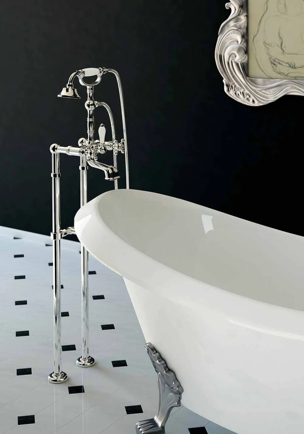 Dieser Mischer ist für die Bodenmontage vorgesehen und mit einem Belüfter und einem 90 ° -Keramikkopf ausgestattet .