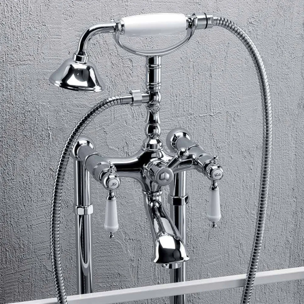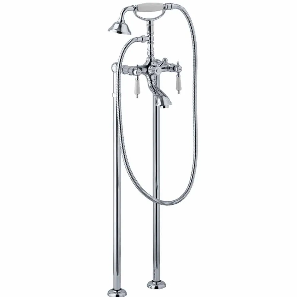 Bademischer auf Bodensäulen mit Messingdusche , 1500 mm flexiblem Schlauch und rechter und linker Schraube.