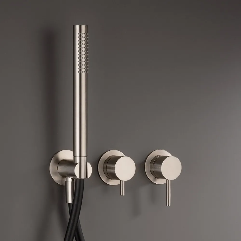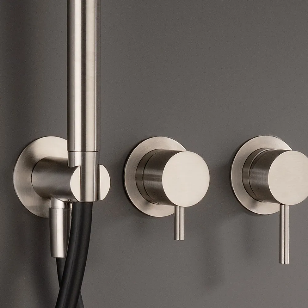 Unterputz-Brausemischer mit 3-Wege-Umstellhebel und Brausenset aus Edelstahl AISI 316L , 100 % recycelbares Material, vollständig in Italien hergestellt.