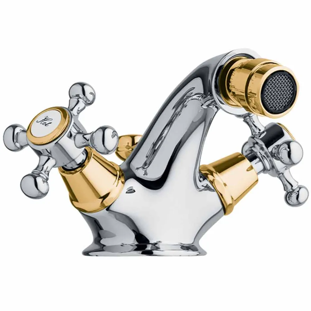 Klassischer Einlochmischer für Bidet aus Messing mit Made in Italy Abfluss.