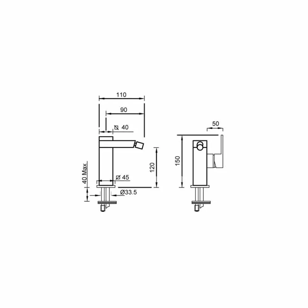 Bidetmischer mit seitlichem Hebel ohne Ablaufgarnitur. Made in Italy.