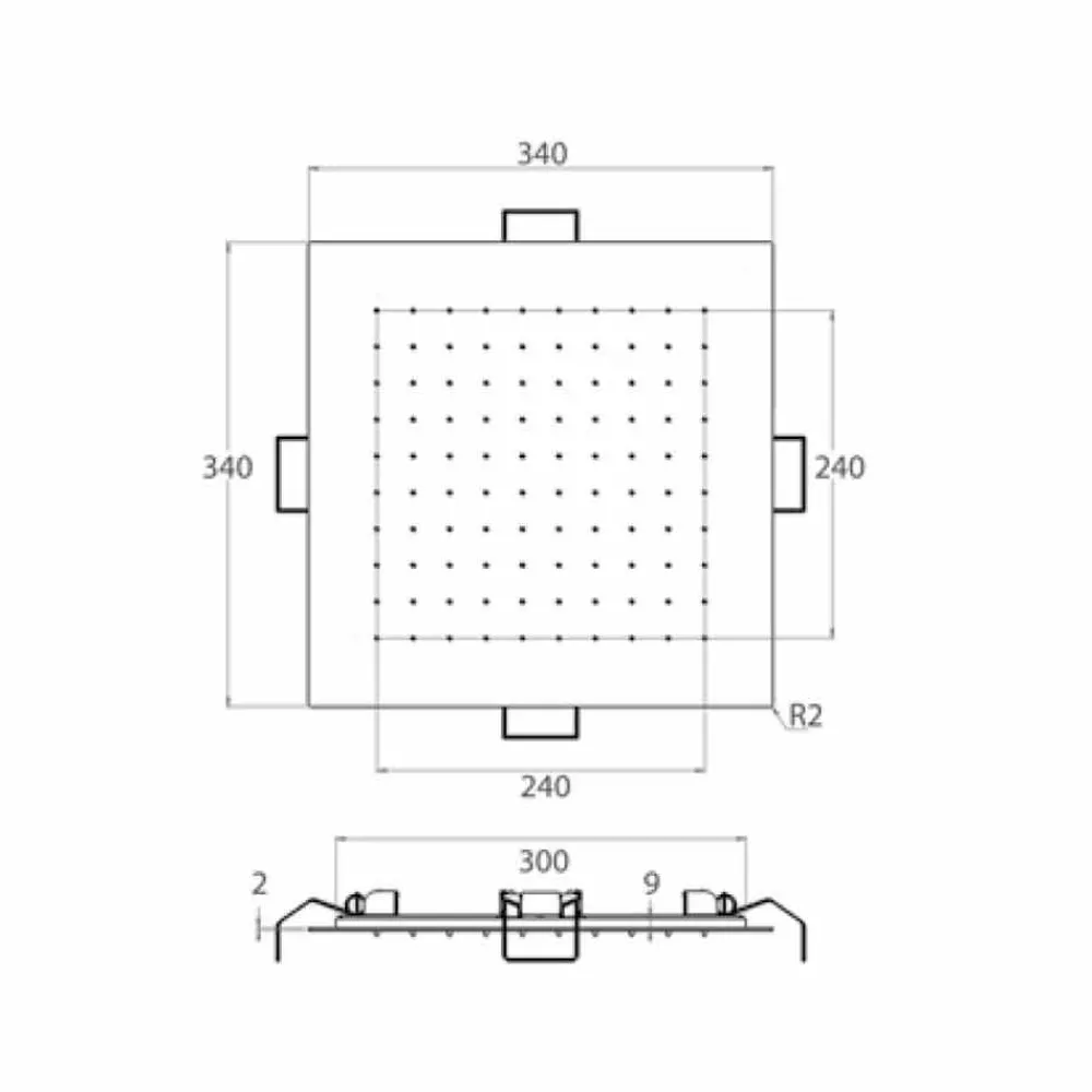- L 340 x T 340 mm;
