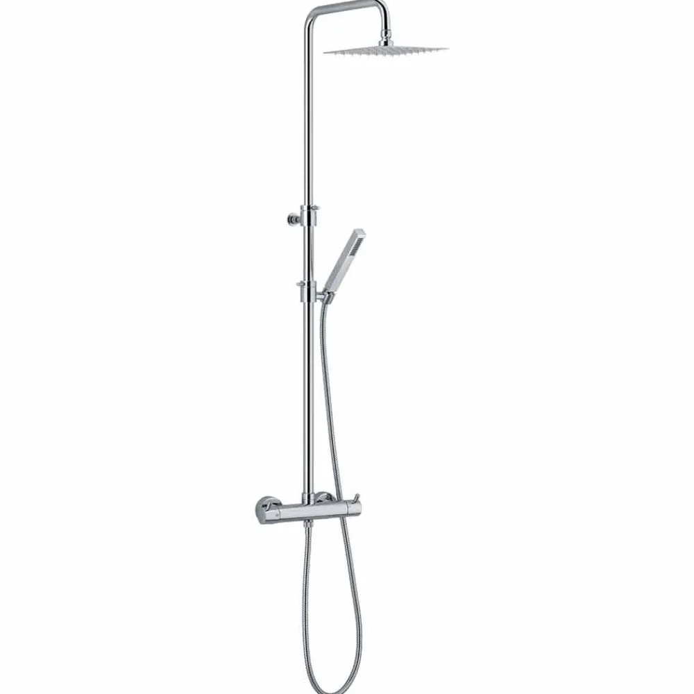 Moderne Duschsäule mit Thermostatmischer und integrierter Umstellung made in Italy aus verchromtem Messing mit Stahl- und ABS-Details .