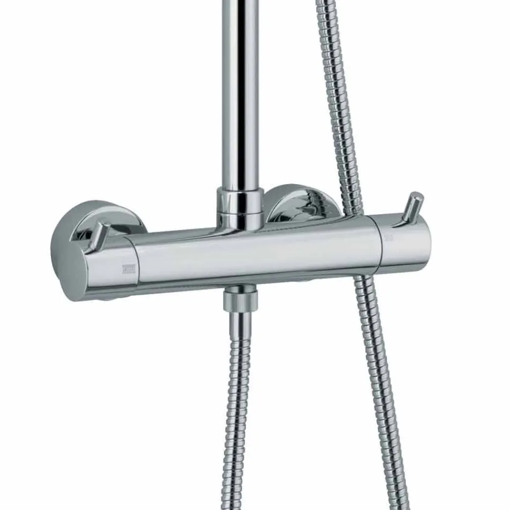 Moderne Duschsäule Hergestellt in Italien mit Thermostatmischer und integriertem Umsteller aus verchromtem Messing mit Stahl- und ABS- Zubehör.