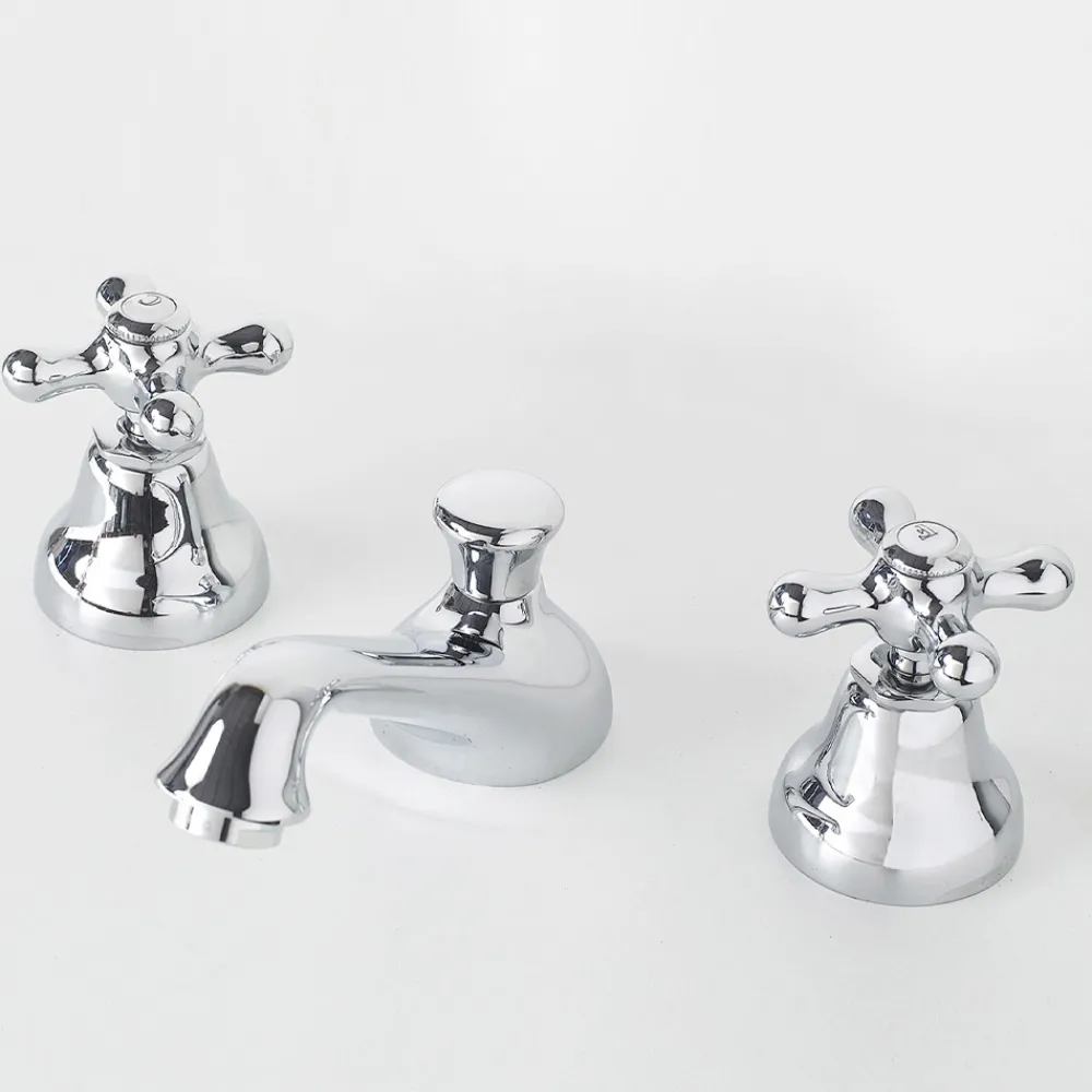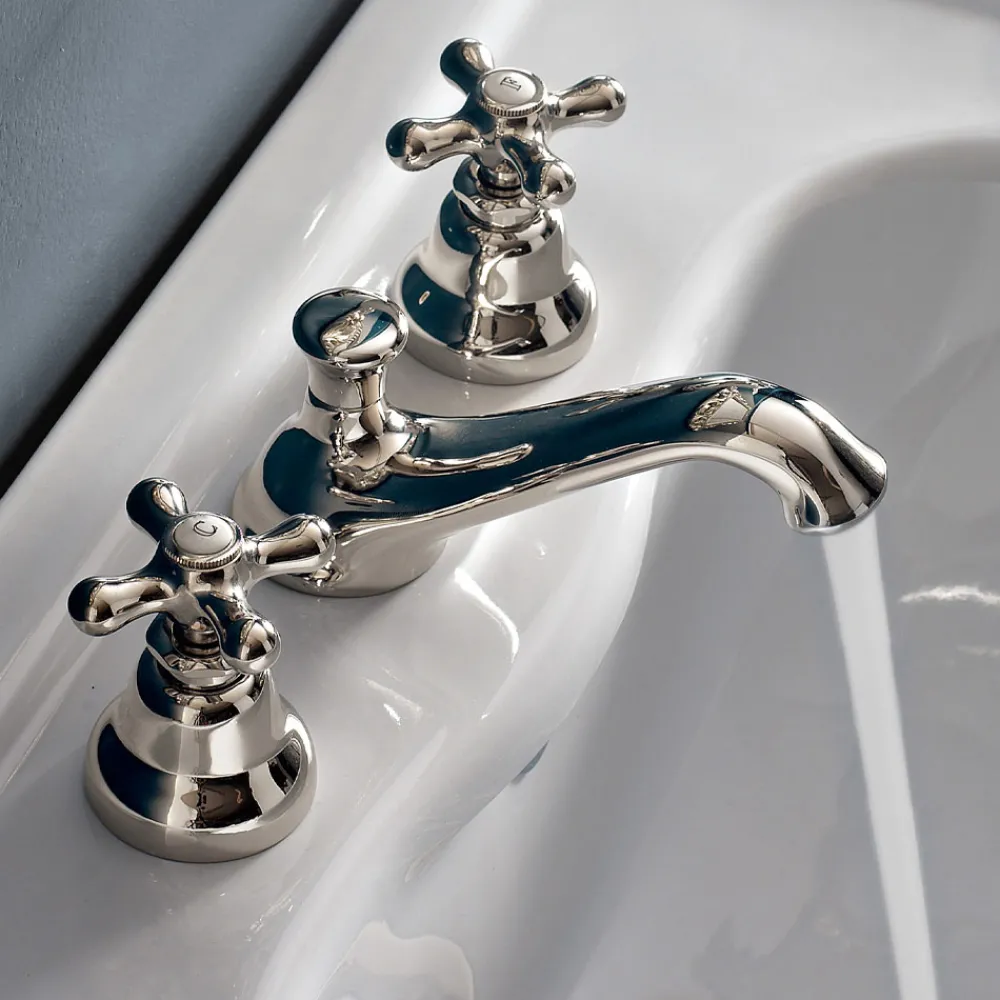 3-Loch-Waschtischarmatur mit Abfluss aus Messing, handgefertigt in Italien.