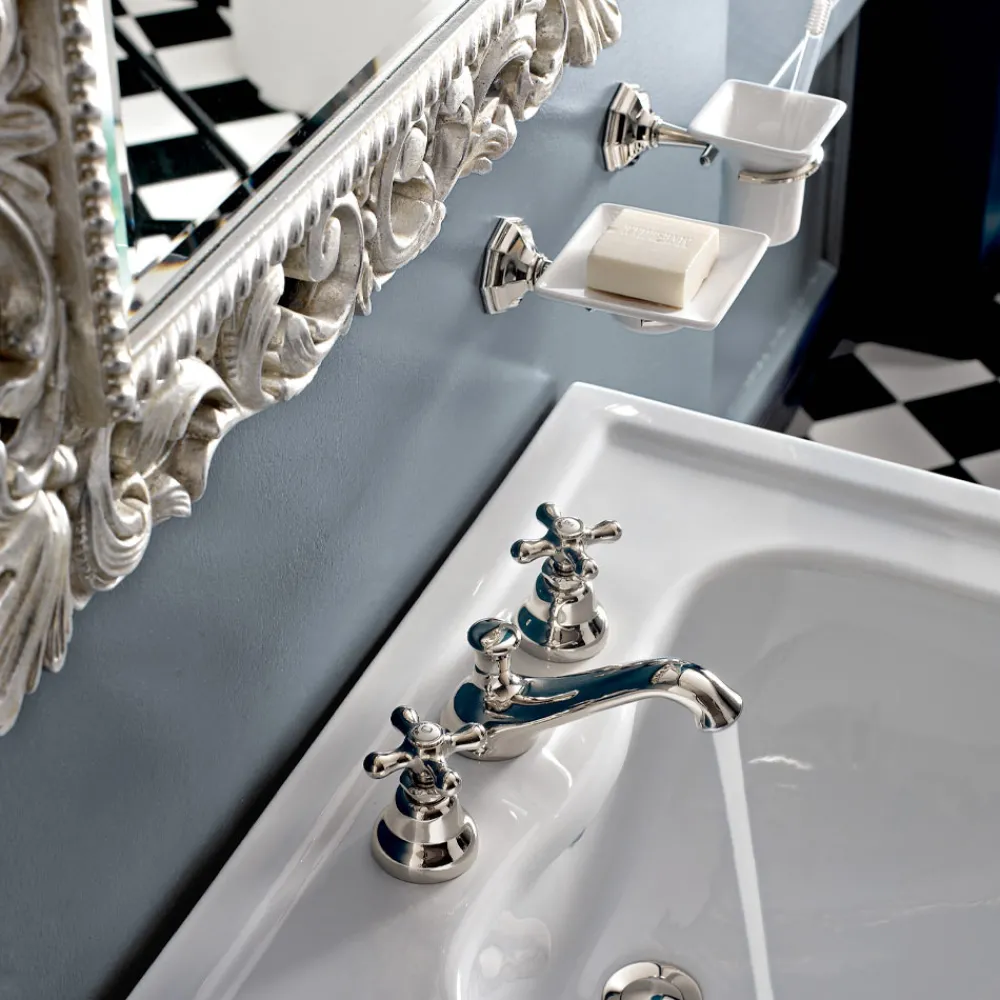 Die Armaturen dieser Kollektion bestechen durch ihre solide Form und extreme Kombinationsvielfalt und sind der ultimative Ausdruck von Eleganz und Raffinesse. Armaturen mit zeitlosem Vintage-Geschmack, perfekt für die Einrichtung luxuriöser Badbereiche mit der qualitativen technischen Zuverlässigkeit von Produkten made in Italy.
