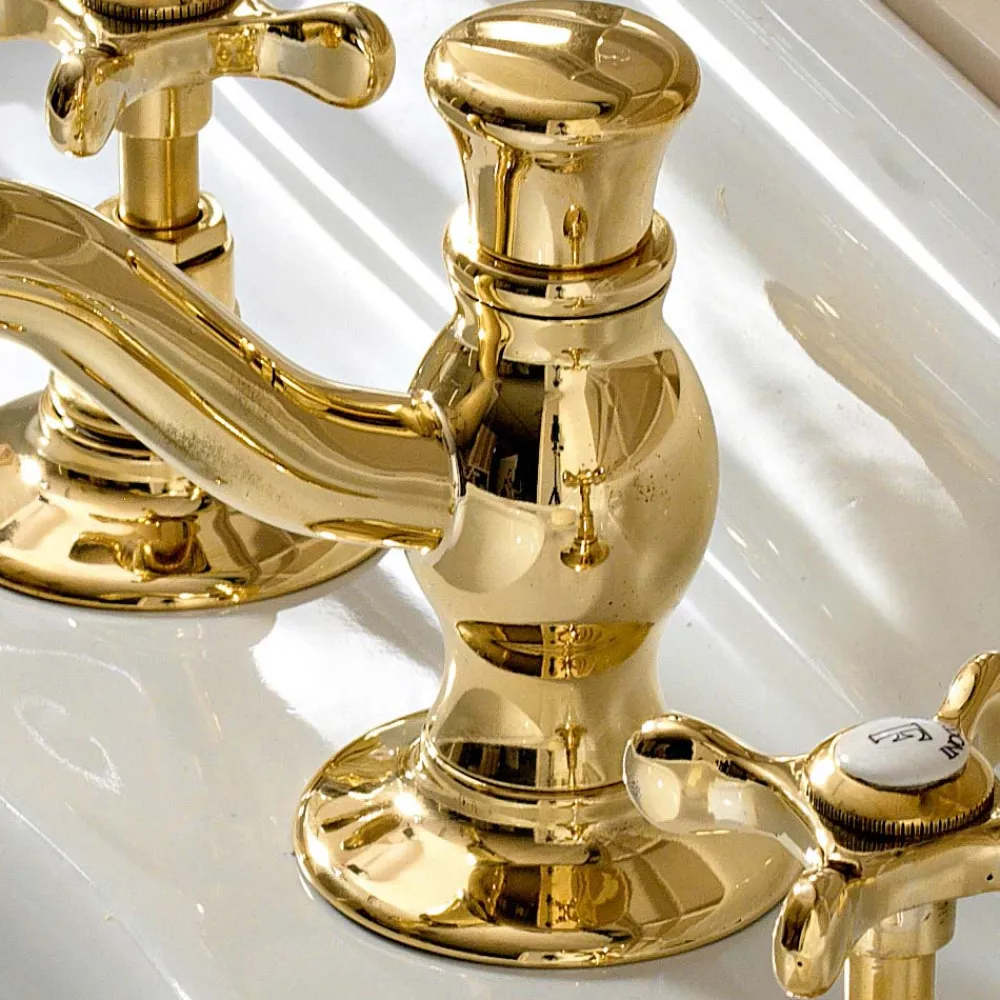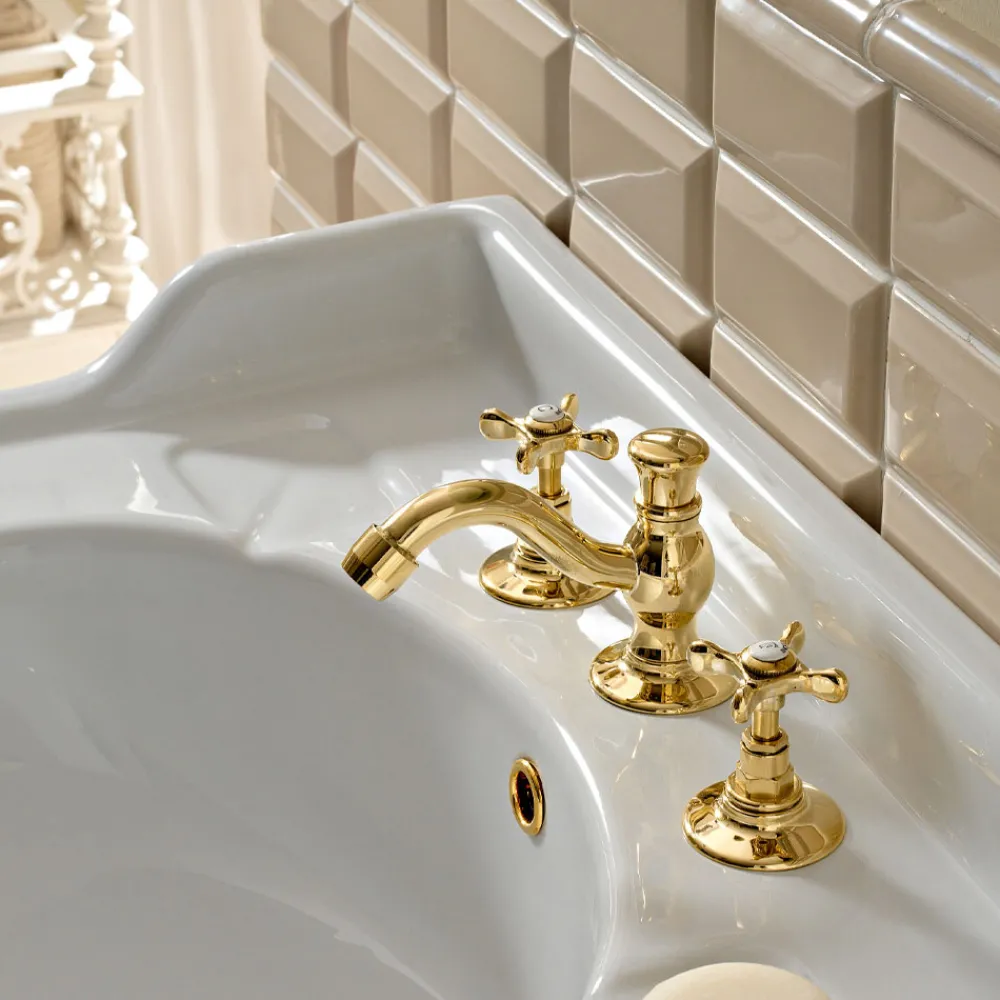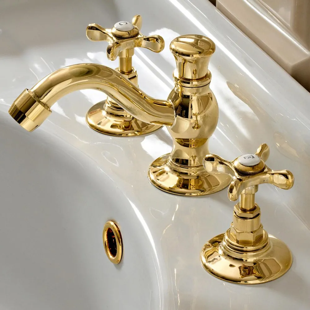 Klassische 3-Loch-Waschtischarmatur aus handgefertigtem Messing, hergestellt in Italien.