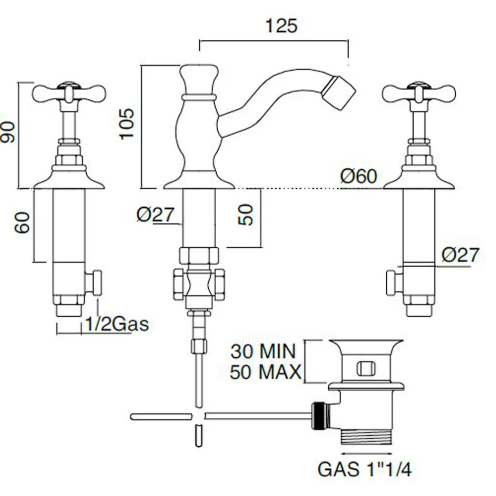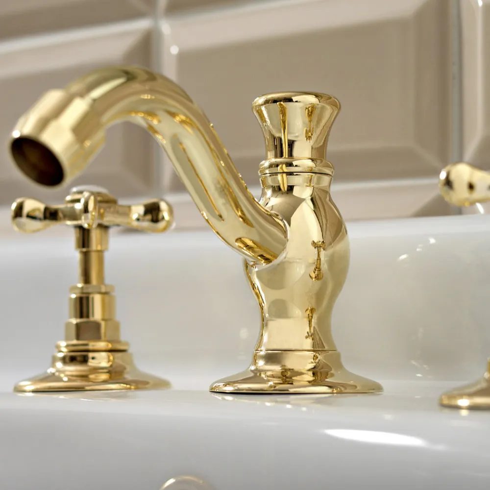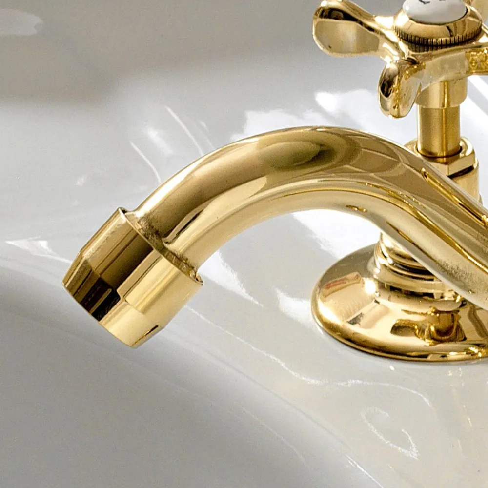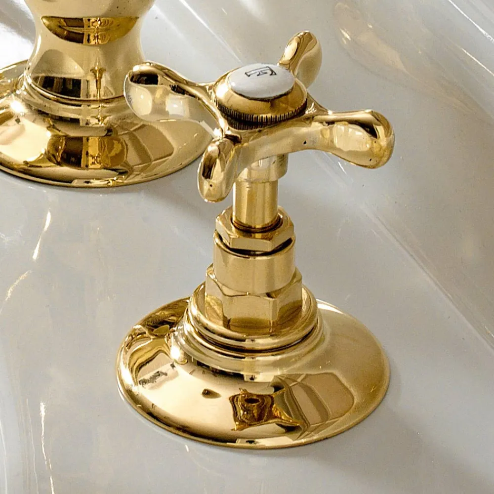 Klassische 3-Loch-Waschtischarmatur aus handgefertigtem Messing, hergestellt in Italien.