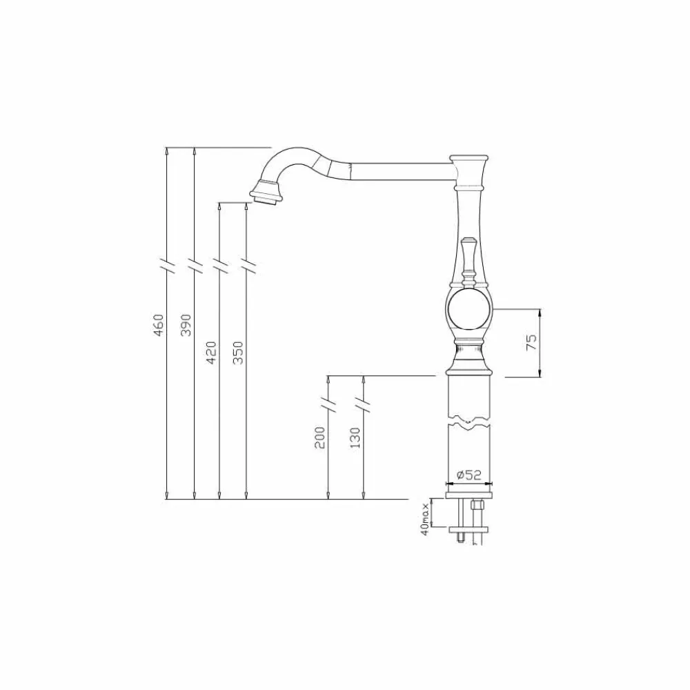 Waschtischmischer mit hohem Auslauf und 20 cm Verlängerung. Hergestellt in Italien.