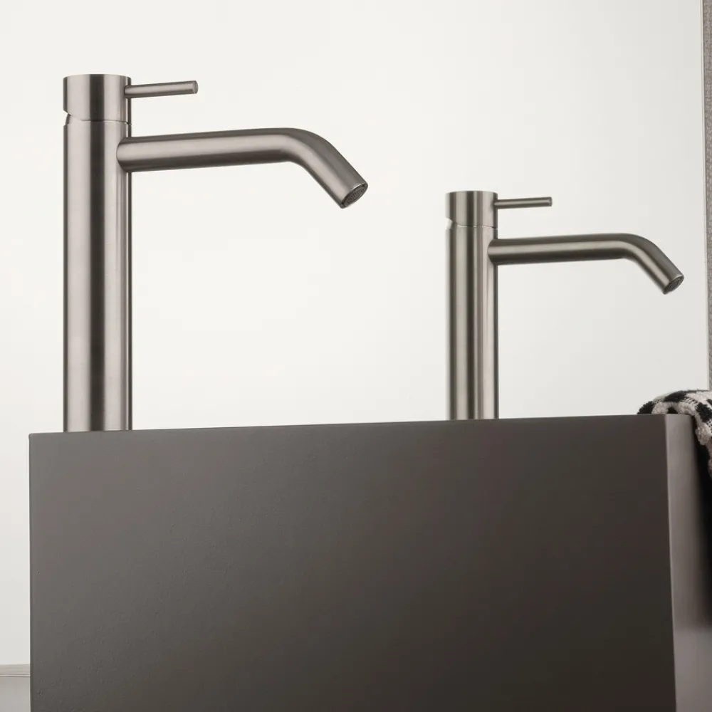 Dieser hohe Waschtischmischer mit langem Auslauf besticht durch sein schlankes und modernes Design und ist ideal, um den modernsten Waschtischen einen Hauch von Eleganz zu verleihen. Die Edelstahloberfläche sorgt nicht nur für ein edles Aussehen, sondern garantiert auch Langlebigkeit und einfache Wartung.