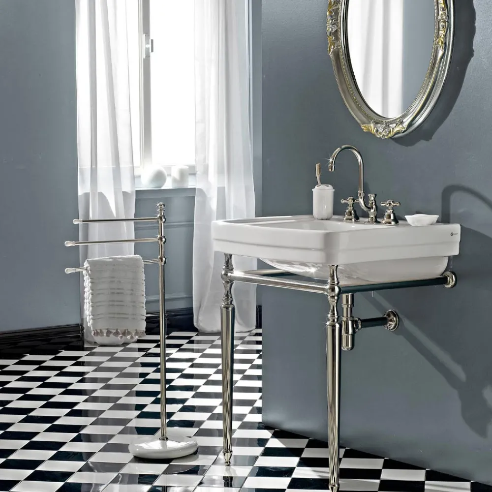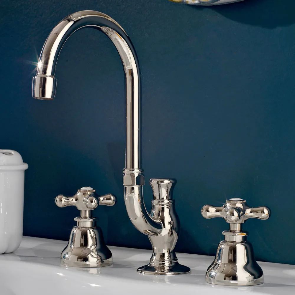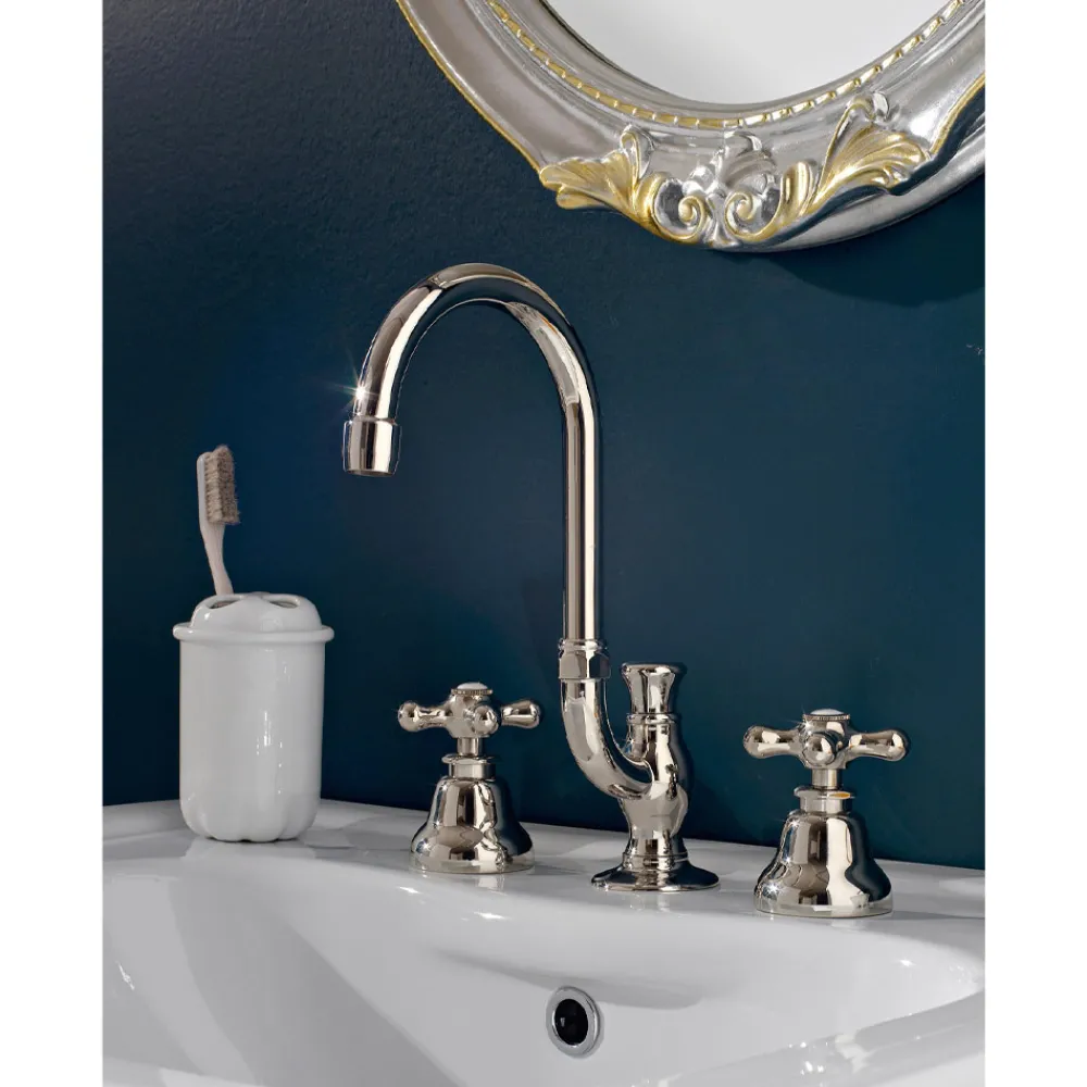 Die Armaturen dieser Kollektion bestechen durch ihre solide Form und extreme Kombinationsvielfalt und sind der ultimative Ausdruck von Eleganz und Raffinesse. Armaturen mit zeitlosem Vintage-Geschmack, perfekt für die Einrichtung luxuriöser Badbereiche mit der qualitativen technischen Zuverlässigkeit von Produkten made in Italy.