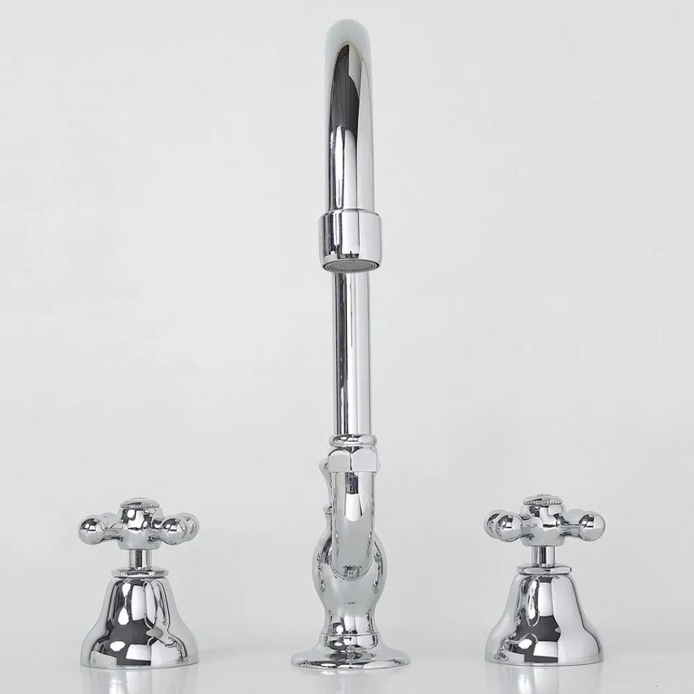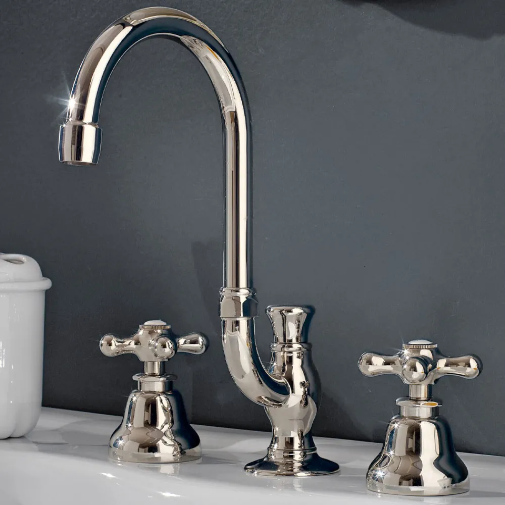 3-Loch-Waschtischarmatur mit hohem Auslauf und Abfluss aus Messing, hohe Qualität made in Italy.