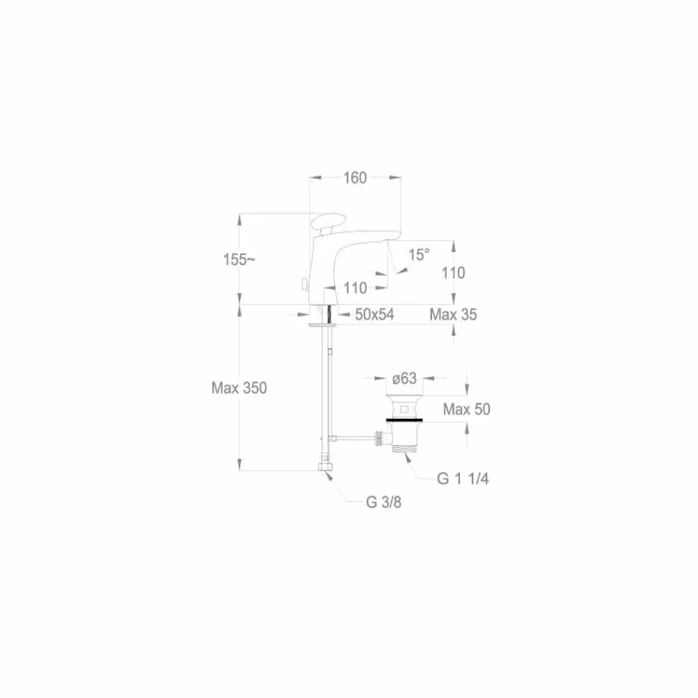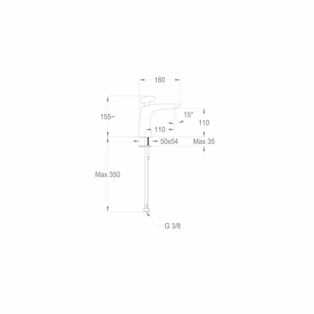 Aufsatzmischer im ultramodernen und avantgardistischen Design mit einer Höhe von 155 mm und einem Achsabstand von 110 mm.