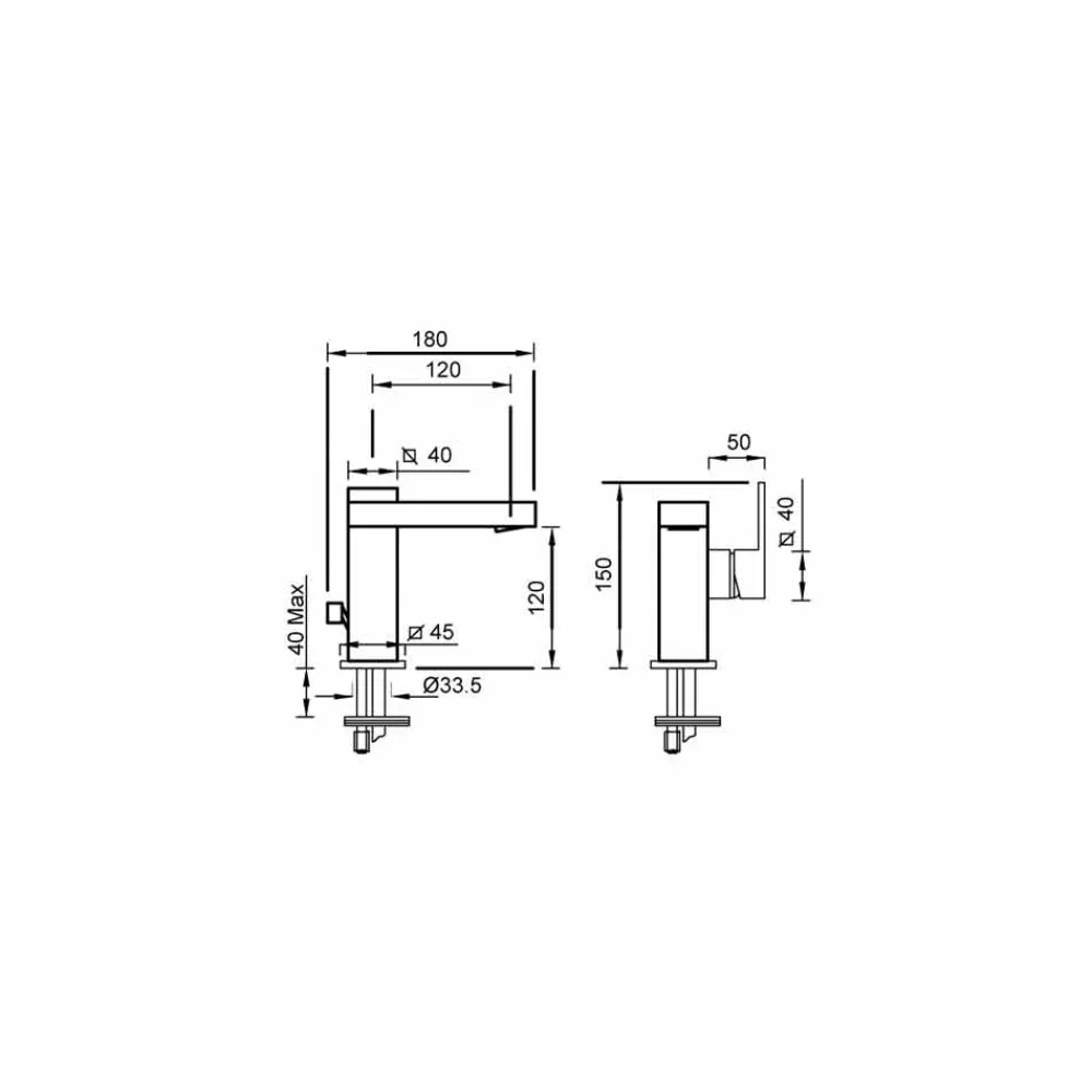 Waschtischmischer mit seitlichem Hebel. Made in Italy.
