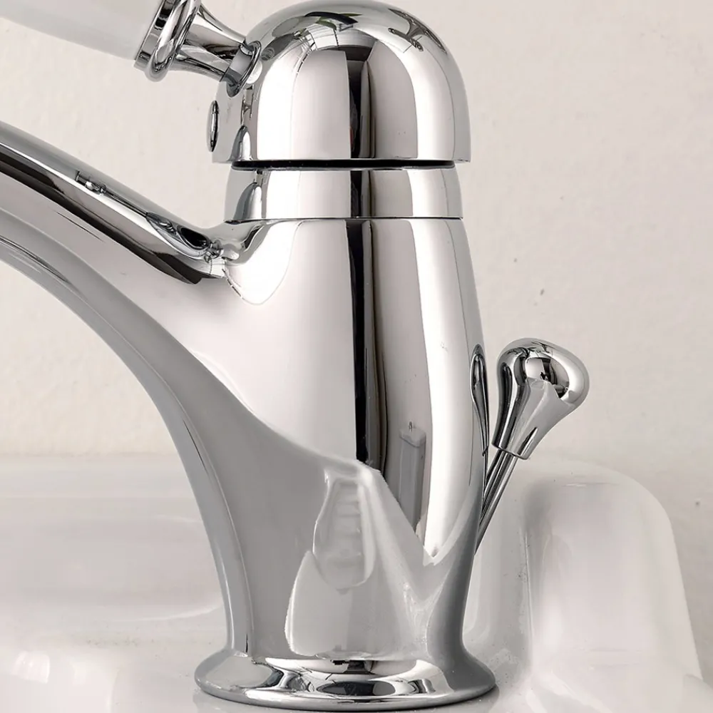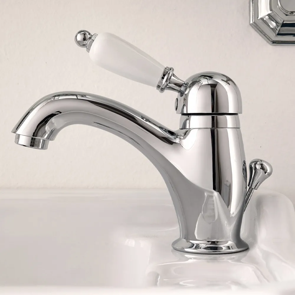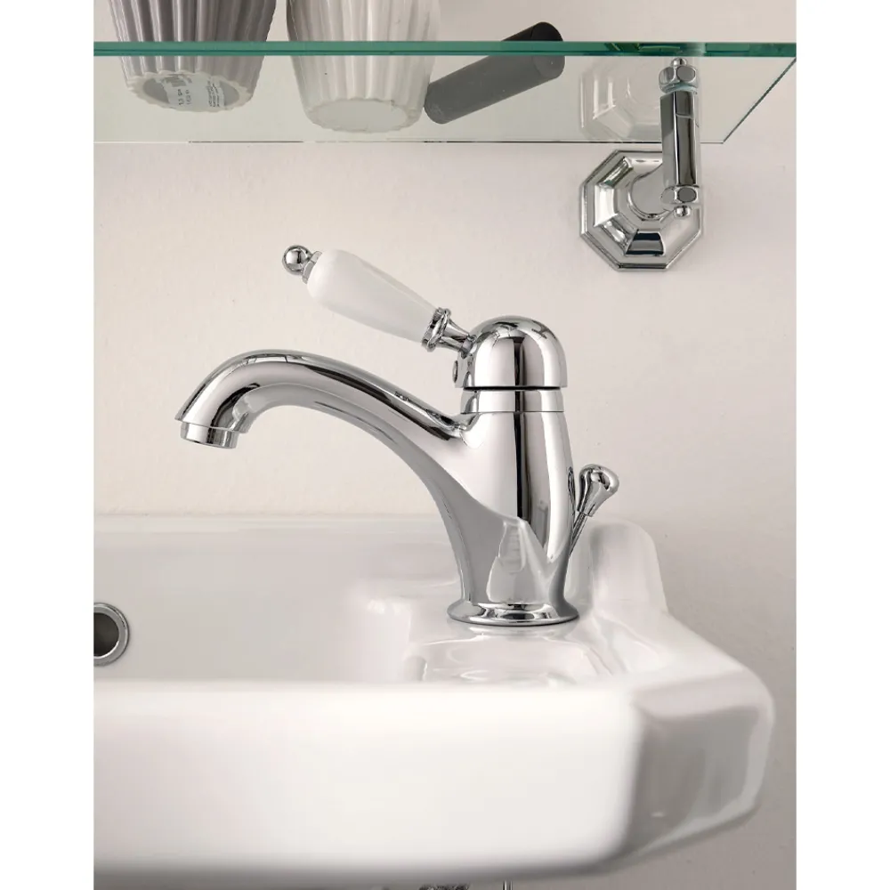 Waschtischbatterie mit klassischem Hebel aus handgefertigtem Messing, hergestellt in Italien.