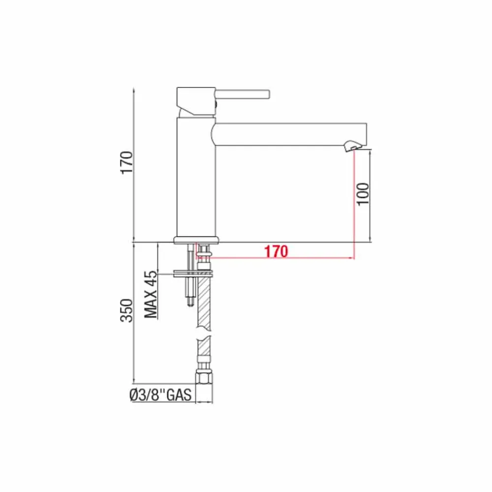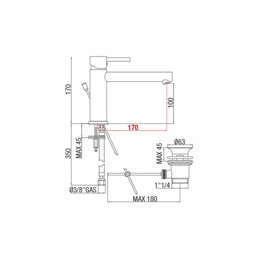 Made in Italien Mischer Waschbecken im Bad aus verchromtem Messing mit Auslauf 170 mm Achsabstand komplett mit Ø 25 mm Kerox Patrone.