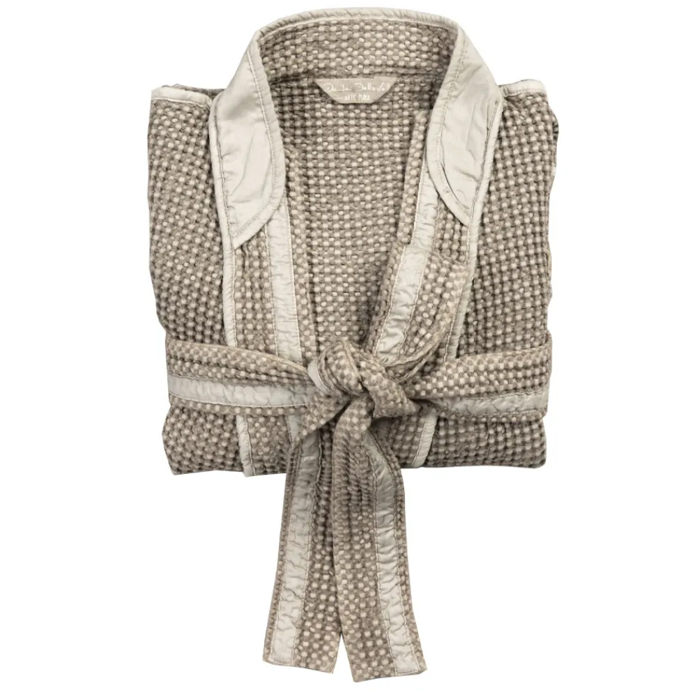 Kimono aus Leinen und Baumwolle mit Wabenverarbeitung, raffiniertes Luxusdesign made in Italy.