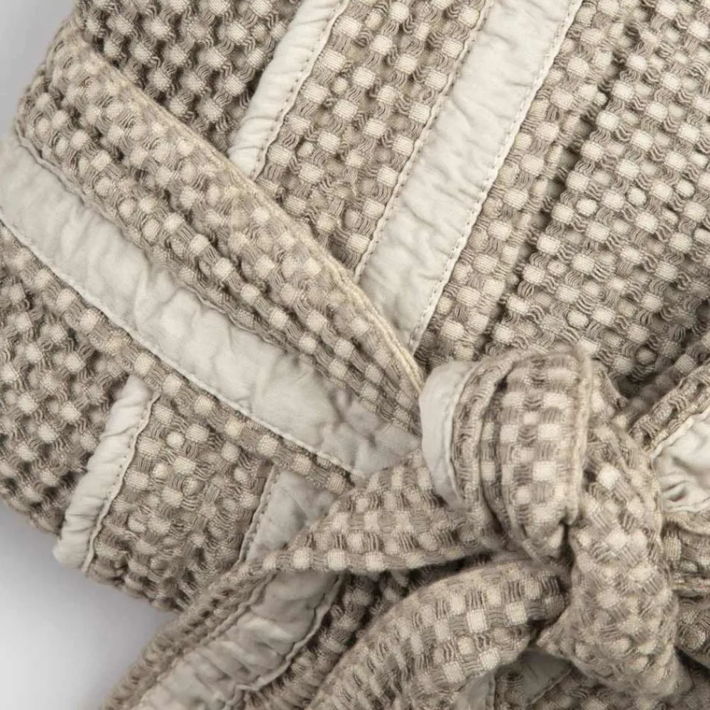 Der Wert der Tradition verbindet den modernen Lebensstil mit dem Bademantel aus Leinen und Baumwolle , der in Retro- oder alten Gipsfarben erhältlich ist.