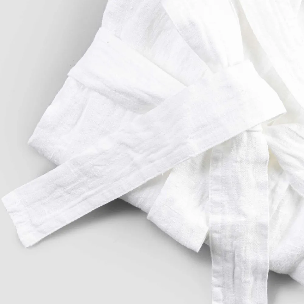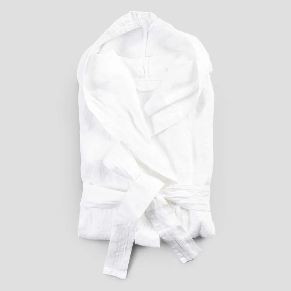 Weißer Leinenbademantel mit Kapuze, raffiniertes Luxusdesign made in Italy.